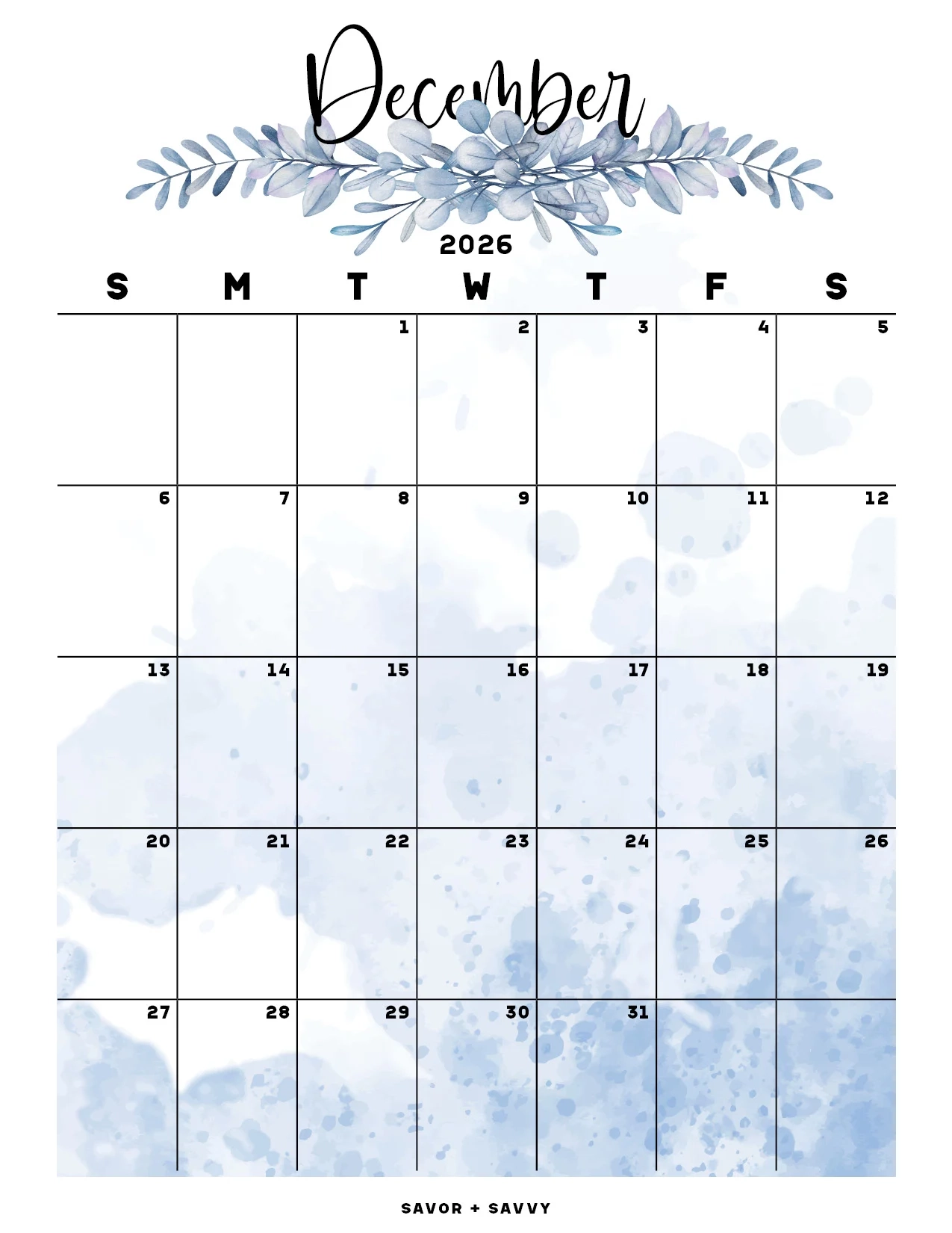December 2026 Calendar Templates 14 Free Printables Savor Savvy
