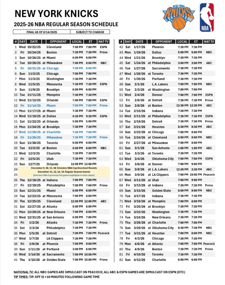 Knicks Schedule Unveiled By Jonathan Macri