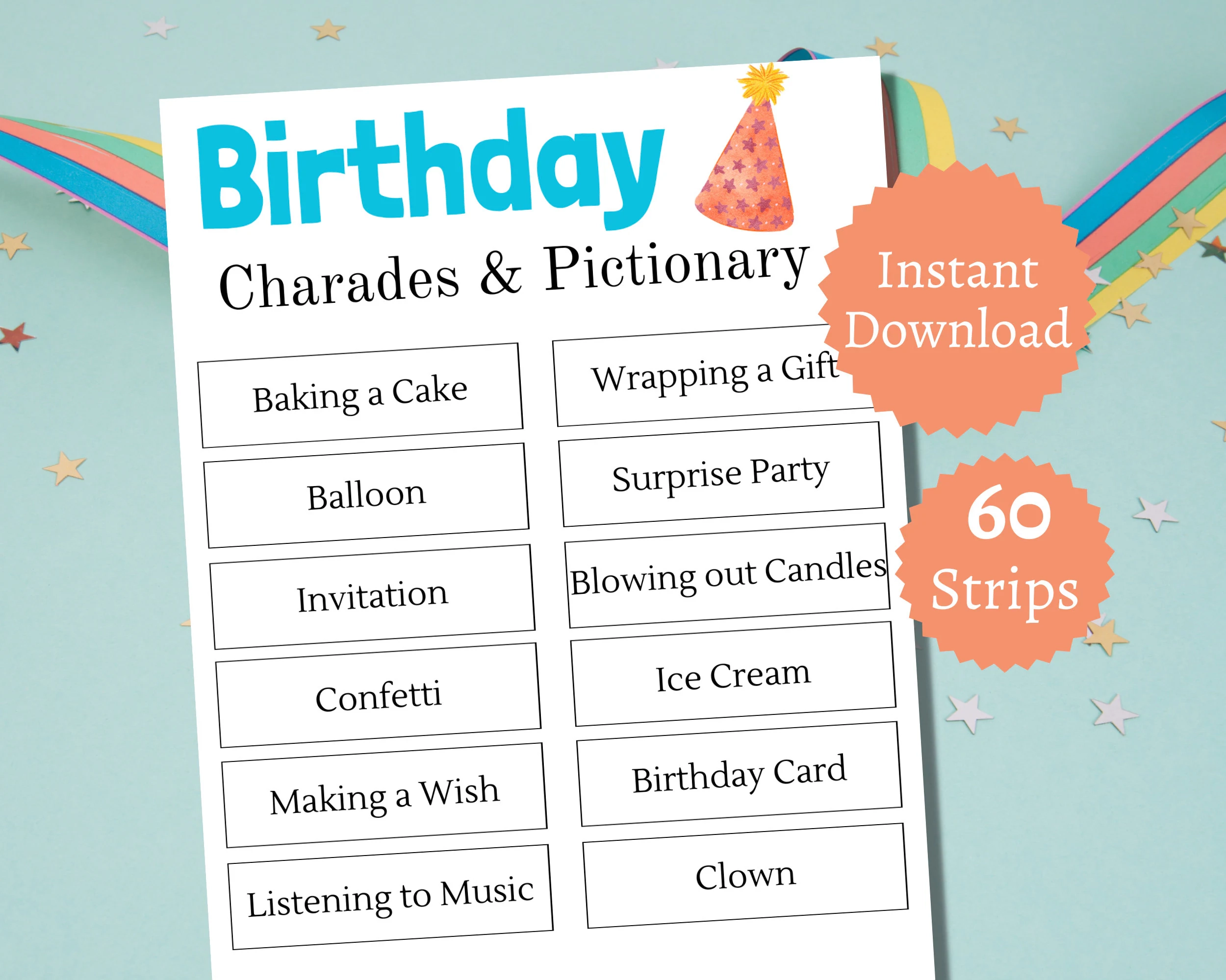 Get ready to laugh, bond, and create unforgettable memories with our Printable Birthday Party Charades Word List. It’s a game that will bring joy and entertainment to your party, leaving everyone with smiles on their faces. Download now and let the fun begin!