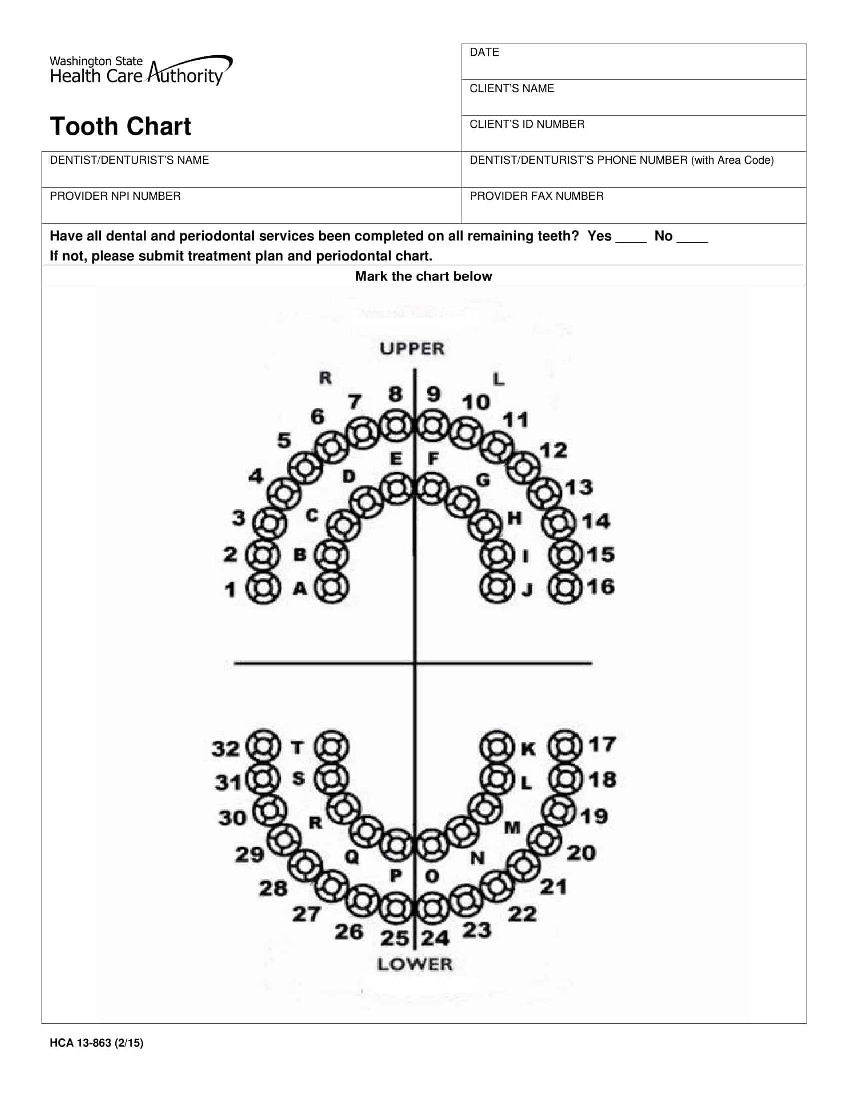 Free Printable Tooth Chart Templates Dental Chart Teeth Numbers PDF