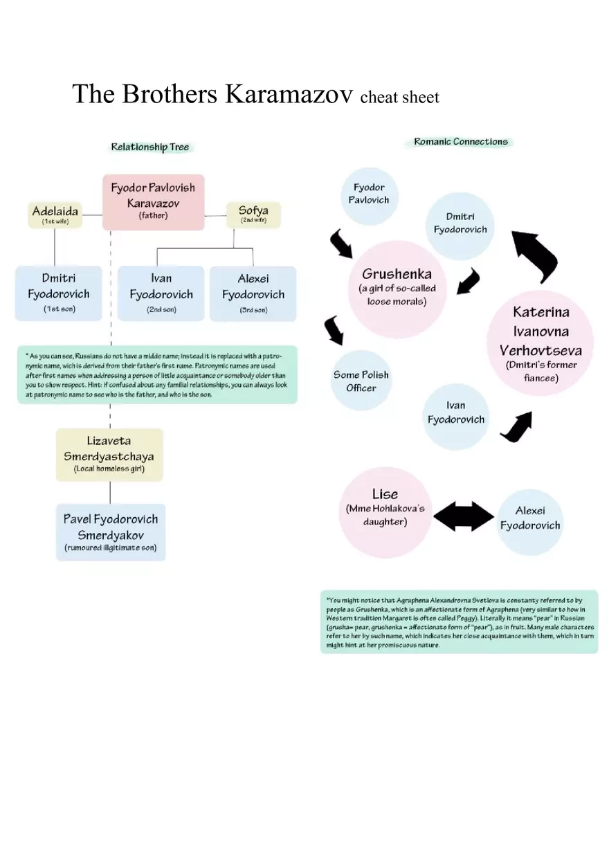 Simply download and print our character list, and you’ll have a handy reference guide at your fingertips. No more flipping back and forth trying to remember who’s related to whom or who said what. Dive into the world of “The Brothers Karamazov” with confidence and ease.