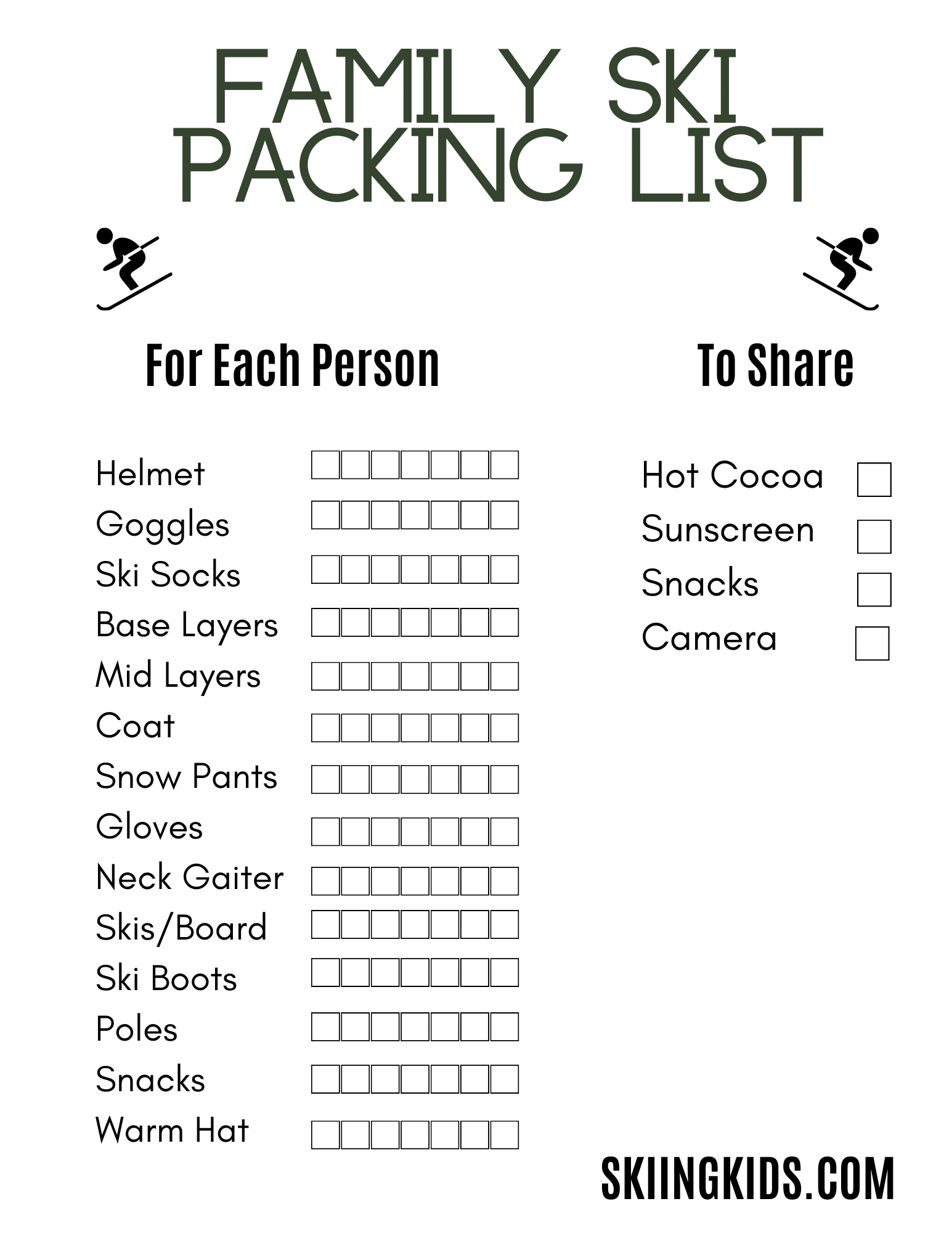 Printable Check List For Ski Trip