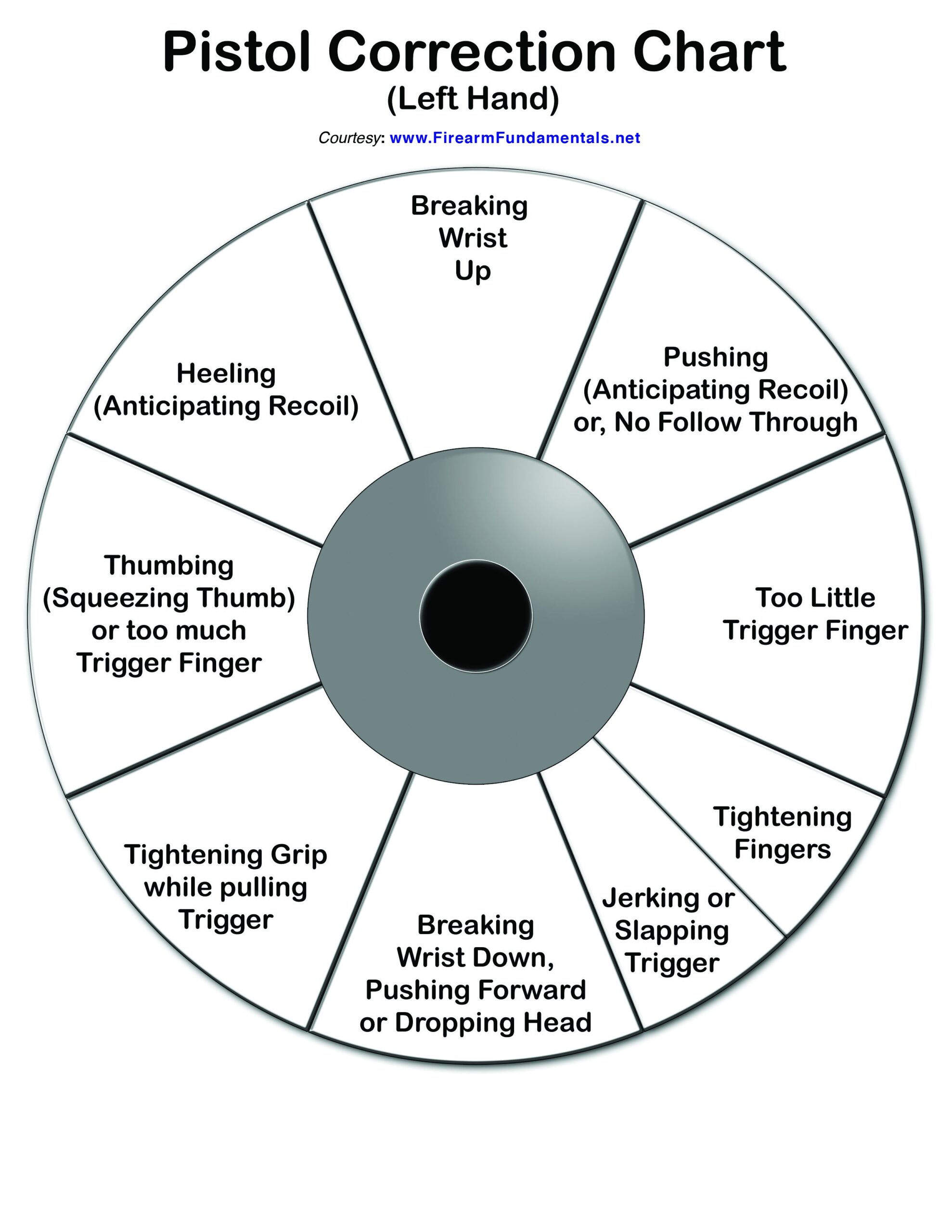 One of the key benefits of using a printable pistol correction chart is its convenience. You can easily reference it during range sessions or dry-fire practice at home. This visual aid serves as a constant reminder of what you need to work on.