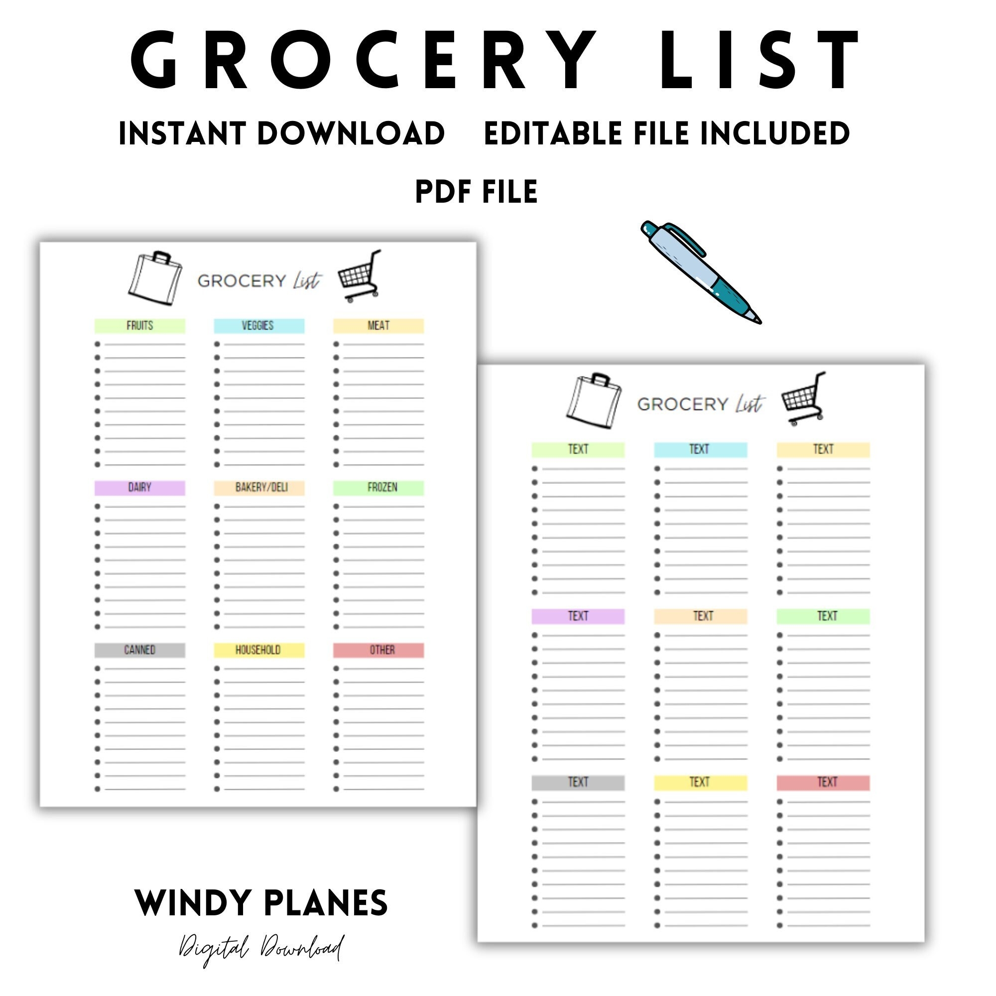Printable Premade Grocery List