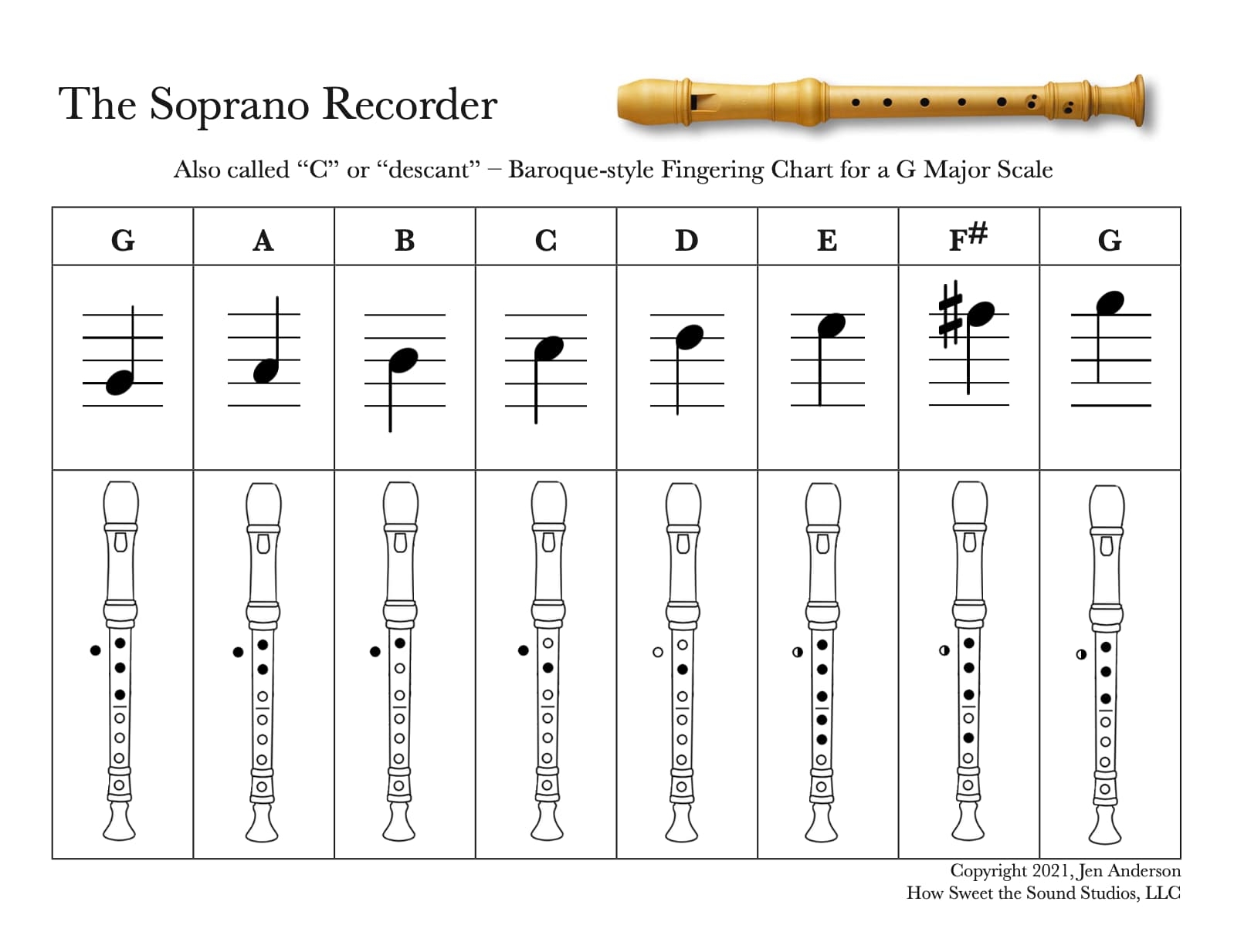 Recorder Fingering Chart Five J s Homeschool