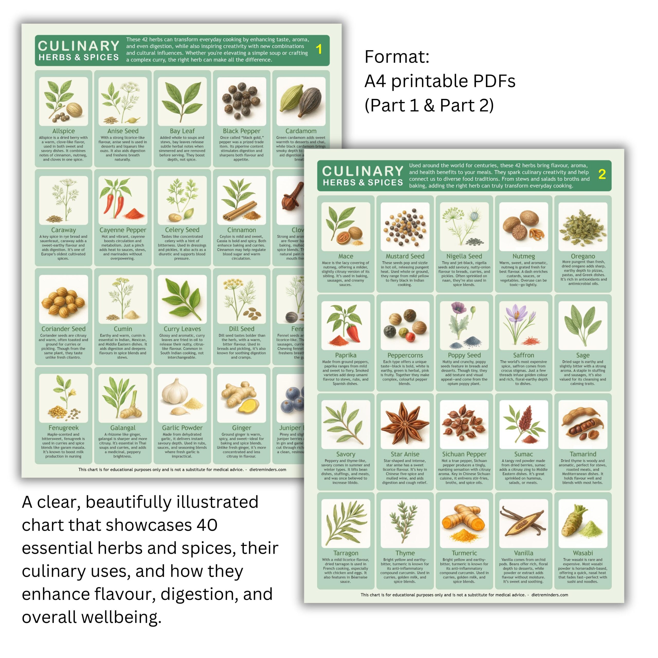 Herbs Spices Kitchen Chart Set Illustrated Cooking Guide digital PDF A4 US Letter Etsy